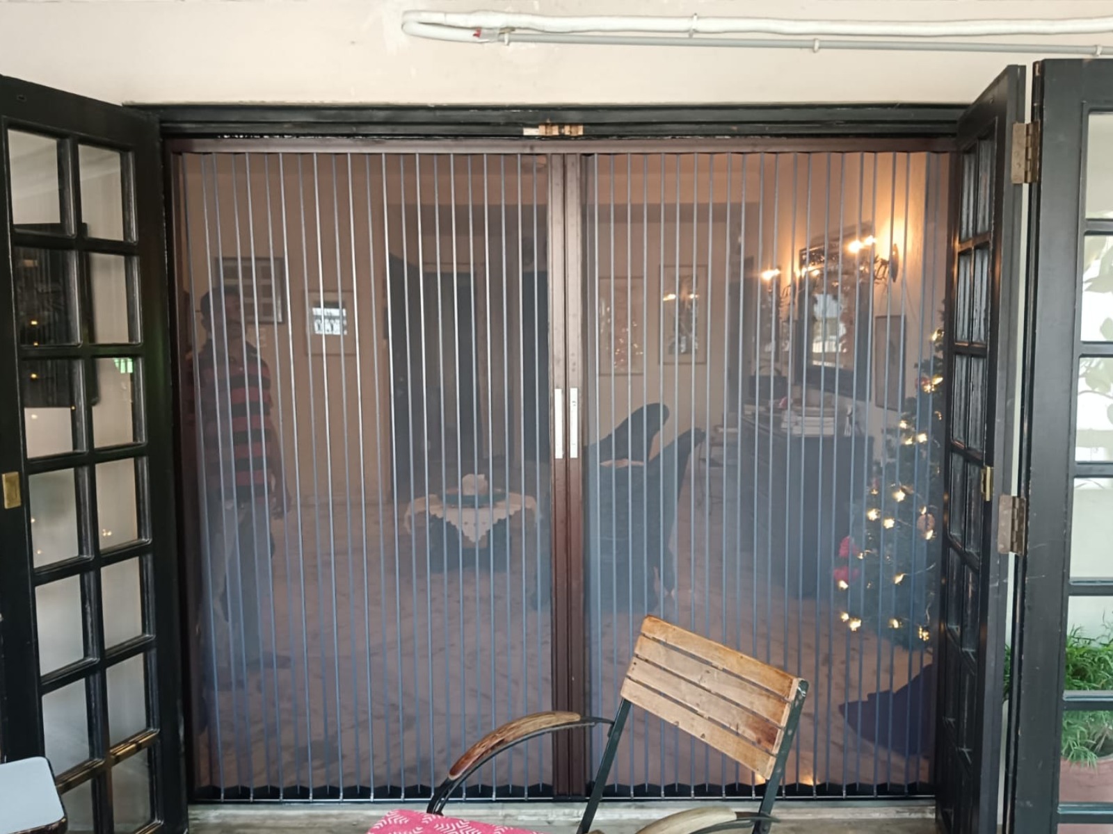 Aluminum Security Mesh Installed in a customer balcony with brown frame color